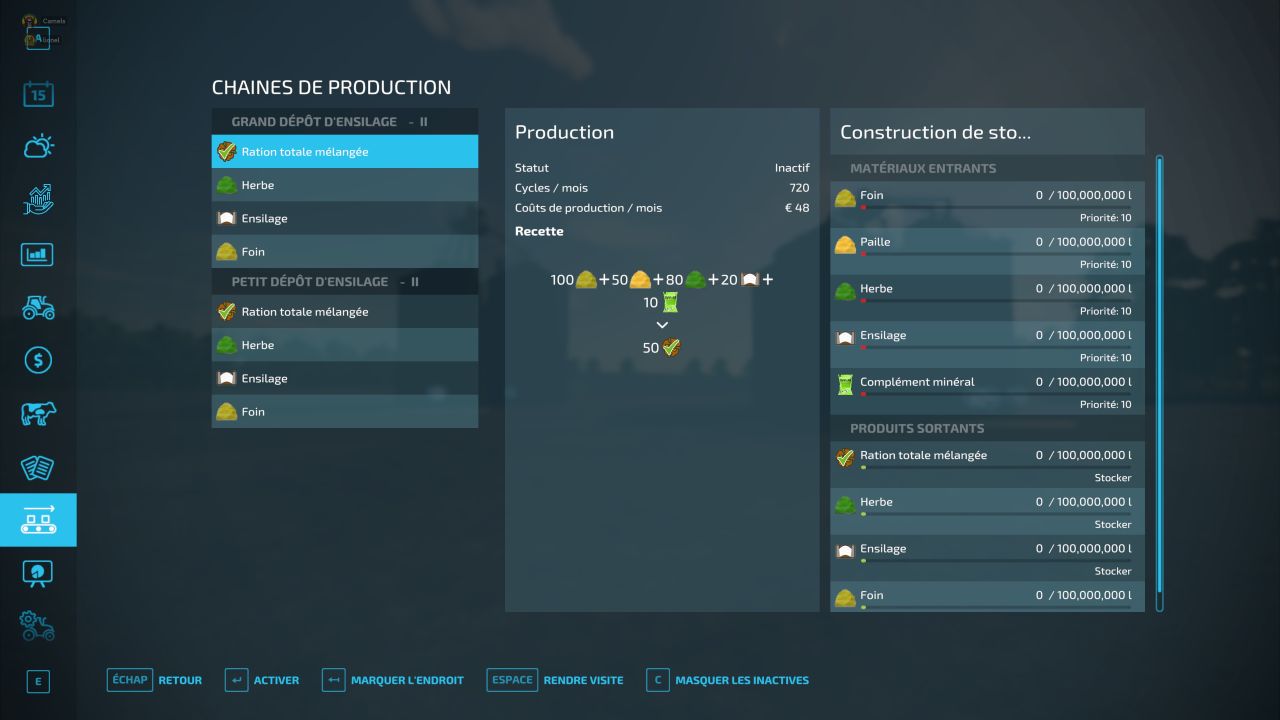 Ich präsentiere Ihnen ein Konzept für eine neue Fabrik zur Herstellung von Gesamtmischrationen für Tiere. Hier sind die Details für zwei Anlagen, eine mit 50.000.000 L und die andere mit 100.000.000 L: