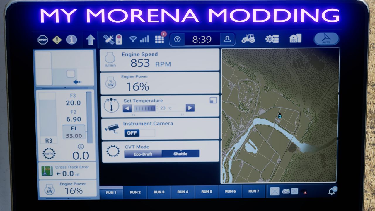 Hello guys, today I come to bring a new tractor, a New Holland T7 HD, it is my own modification, selectable colors, it has a built-in spot red with which you can guide yourself to attach your rear implements, it has an engine modification with real open sound pipe, optional power configuration, and most importantly, it has an integrated screen with the real-time map, for which you will need the REAL GPS MOD. The latter is optional, you can use it without it, but it is totally recommended to enjoy it 100%, I hope you like it.